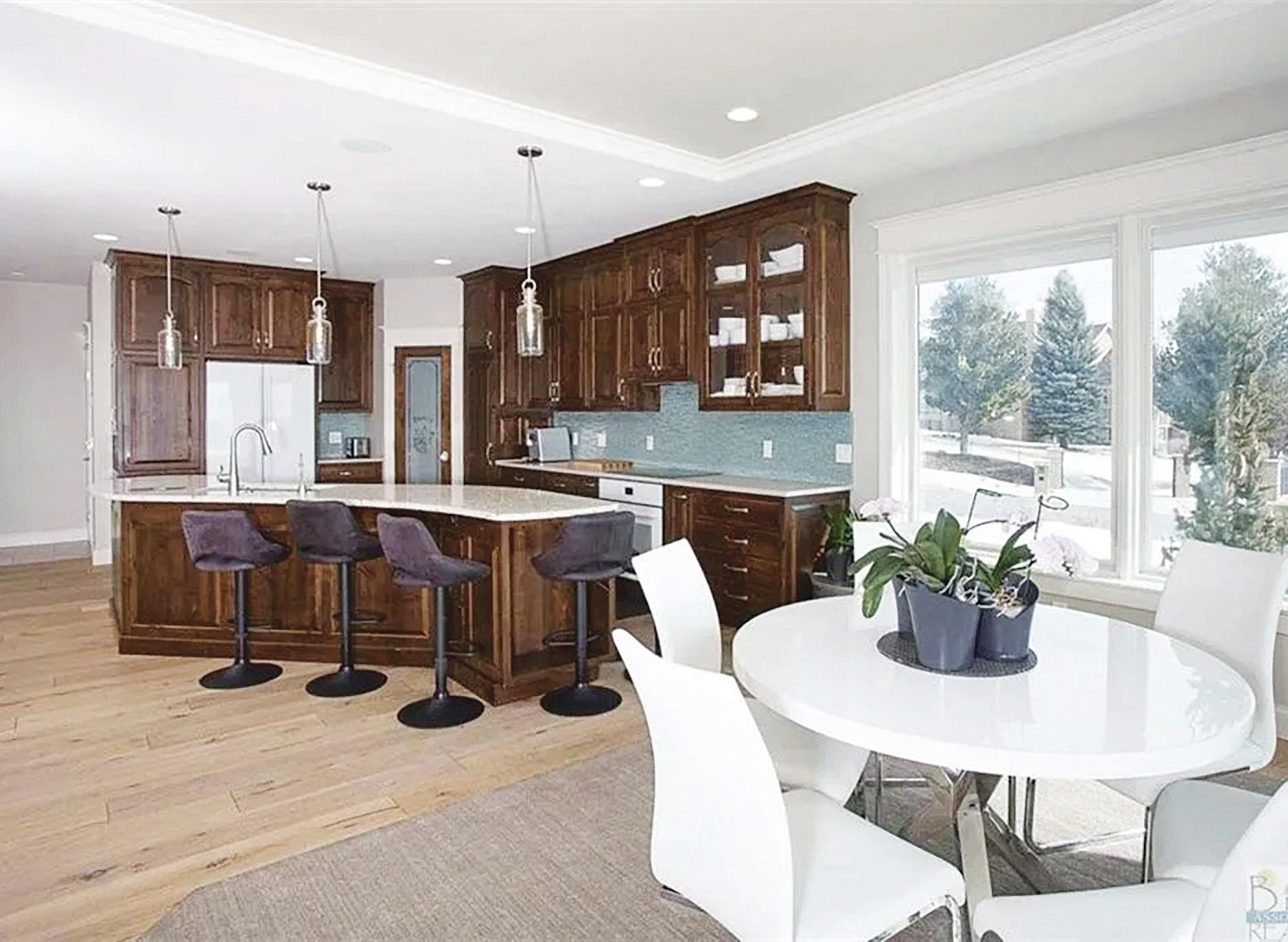 WINTER DRIVE • BILLINGS, MT Quality shines the minute you walk in! Beyond the Box cabinetry & designer. Open concept to well-planned kitchen. SS appliances, solid surface counters, lg island. Custom railings, main floor laundry. Master bed has tray ceiling w/custom lighting. Beautiful master bath-custom shower w/overhead rain shower head & hand-held option, & beautiful choice of tile! 4 bed, 3 bath, room for shop. Full wet bar in finished basement.