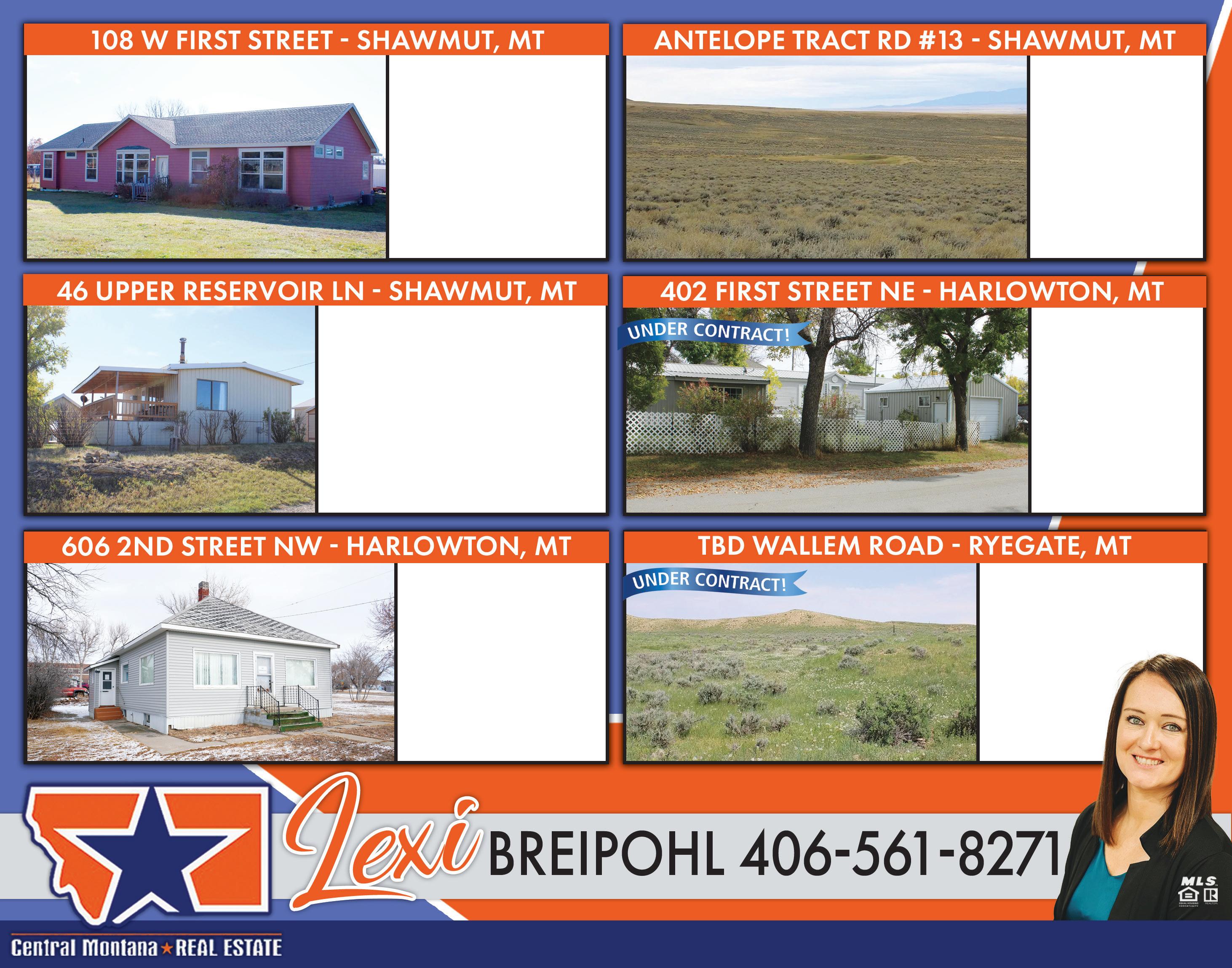 SQFT. $925,000 – MLS#113814 JIM HILDERMAN 406-425-1540 MONTANA REALTY COMPANY 101 HAGGIN AVE S RED LODGE, MT DRIVE BY 4 Beds, 2 Baths, 2,200 SQFT. $599,900 – MLS#343304 GINGER NELSON 406-254-1550 BHHS – FLOBERG 108 W FIRST ST SHAWMUT, MT DRIVE BY 4 Beds, 2 Baths, 2,170 SQFT. $290,000 – MLS#343091 LEXIE BREIPOHL 406-561-8271 CENTRAL MONTANA RE 46 UPPER RESERVOIR LN SHAWMUT, MT DRIVE BY 2 Beds, 1 Baths, 768 SQFT. $199,000 – MLS#342599 LEXIE BREIPOHL 406-561-8271 CENTRAL MONTANA RE OPEN HOUSES & DRIVE BUYS! MAPPED ONLINE with GOOGLE TM MAPS & POSTED ON FACEBOOK! COLUMBUS HUNTLEY CHESTER RED LODGE ACTON HARLOWTON LAUREL www.Facebook.com/WeeklyRealEstatePortfolio www.Facebook.com/groups/montanaforsale www.instagram.com/rimadvertisingmt www.BillingsRealEstate.org rim3@montanan.net 7 BUGLING ELK LANE COLUMBUS, MT MAKE THIS YOUR DESTINATION LOCATION W/A CUSTOM-BUILT HOME. This 21-ac parcel w/power that comes right up to the lot, making it ideal for recreational outlet for late summer camping & hunting season. Plug the camper in & you’re good to go. Traffic consists of neighbors coming to enjoy the views, quietness, private living & wildlife you’re seeking yourself. Don’t let the easement road scare you off. Wildlife that’s been seen on the property include elk, mountain lions, deer, turkeys & black bear.