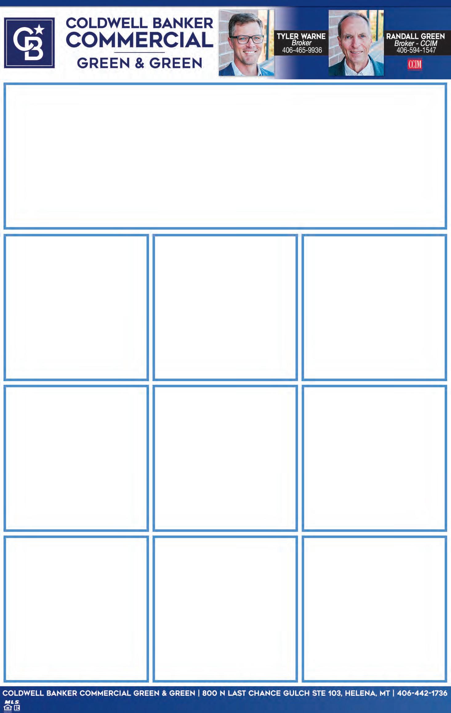p 12 WWW.CBCMT.COM 1 VIRGINIA ROAD - CLANCY, MT DISCOUNT FOR BUSINESS & REAL ESTATE • 2400 sf Commercial Building • Finished & Heated offices spaces Heated warehouse storage Lot is landscaped w/UGSP CHRISTMAN ROOFING BUSINESS ONLY ESTABLISHED BUSINESS • LESS than 2 times Discretionary Income • Contracts in place Employees and equipment Buy your market share with this business!! 2735 COLONIAL DR UNIT C – HELENA, MT 3863 SF FINISHED SPACE, $27/SF 6 overnight rooms Kitchen, livingroom, f/p On Shodair campus in Jack Casey Bldg Near St. Pete’s Hospital Call Mike Joki 608 N LAST CHANCE GULCH - HELENA MT T-MOBILE BUILDING - $1,550,000 NNN lease in place 2,400 SF Lighted, 5 -way intersection • Downtown Helena Recent updates Additional income from lower lvl parking • Call Mike Joki HELENA ACCOMMODATIONS BUSINESS AND REAL ESTATE FOR SALE 18 Fully furnished units Near downtown Helena Short Term Rentals/ Extended Stay Four buildings (11,000 sqft) • CAP Rate: 6% NEW LISTING! NEW LISTING! 2620 SHODAIR DRIVE - HELENA MT SHELL MEDICAL OFFICE- $16 / SF 6800 SF of shell space Shodair Children’s Hospital Campus Near St. Pete’s Hospital good on-site parking Design your own medical office space Call Mike Joki NEW LISTING! 1805 PROSPECT AVE - HELENA, MT Fully leased to the State of Montana • 18,640 SF Office Building Recent Updates High traffic, lighted intersection • Call Mike Joki NEW LISTING! - FOR SALE 250 MILL ROAD - HELENA, MT GREENHOUSE SPACE FOR LEASE $0.28/SF/Month 21,600 SF Available, Modified gross lease Greenhouses have irrigation & heat • Property is secure & has great water 608 N LAST CHANCE GULCH - HELENA, MT LOWER LEVEL OF T-MOBILE BLDG $5 / SF 5,150 SF Garage/Storage space • Central downtown Helena location Level access from parking lot • Call Mike Joki NEW LISTING! - FOR LEASE