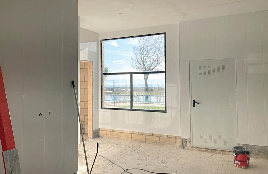 exterior, tanto las ventanas como la puerta de acceso, la renovación del aseo y también obras en la fachada. En este sentido, al retirar el material que la cubría, han descubierto que la piedra original del edificio se mantiene en buen estado por lo que han decidido limpiarla y dejarla a la vista, logrando integrarla mejor en su entorno.