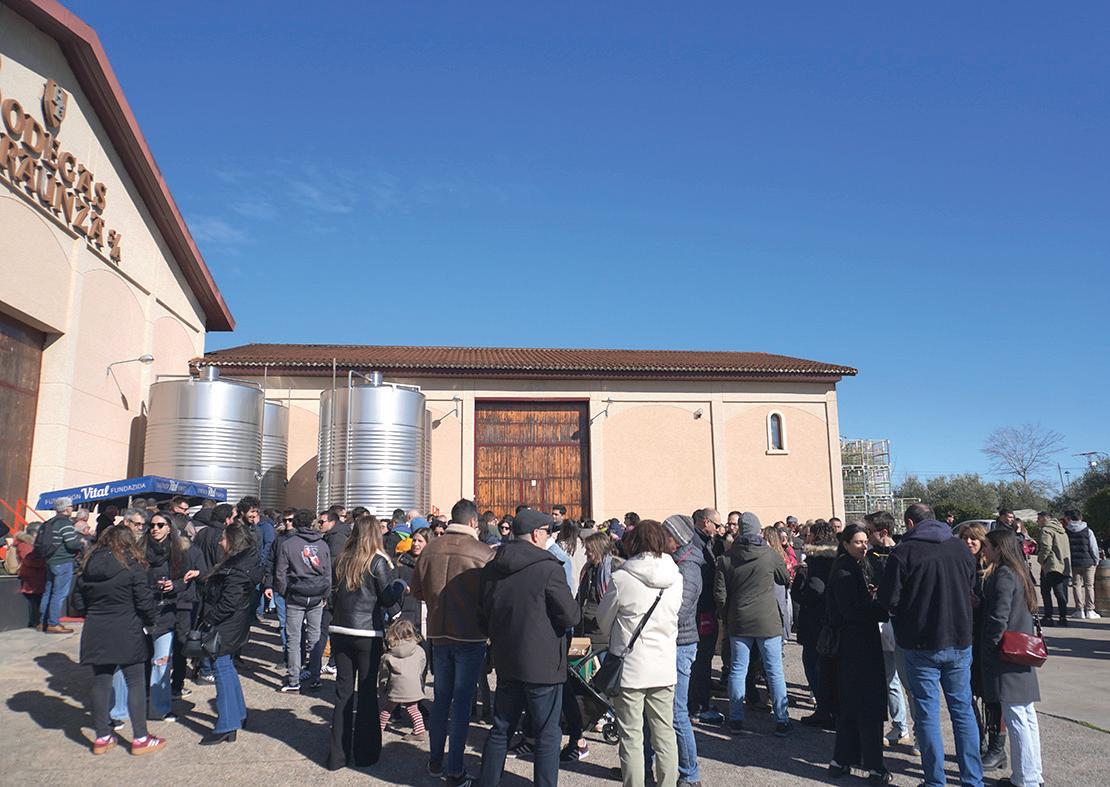 todas las personas presentes. A continuación, la plaza se fue despejando al ritmo que la asistencia se acercaba a alguna de las ocho bodegas que ofrecían sus vinos a degustar. Como viene ocurriendo en las últimas ediciones, las bodegas sacan un puesto a su puerta para ofrecer la degustación, mientras quienes se interesan por realizar una visita a su interior deben reservarla previamente.