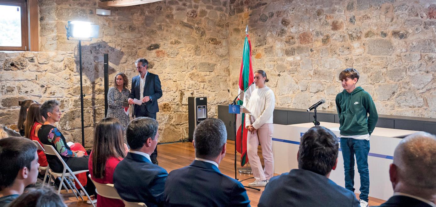 El acto contó con la participación de alumnos y profesores, a los que acompañaron los representantes municipales y alcaldes de las localidades donde se ubican los centros educativos reconocidos por el Gobierno Vasco, para decir Maite Córdoba, alcaldesa de Lapuebla.