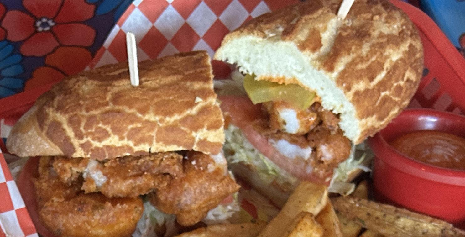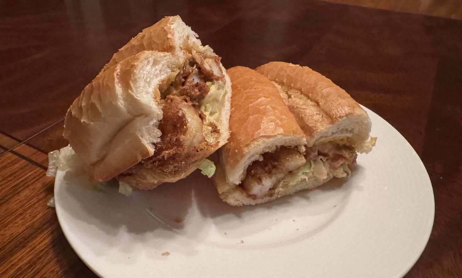 What sets the po’boy apart is its balance. Often fried seafood sandwiches can be greasy or lack structure, but in this sandwich the bread stays firm and all the different flavors only come together as you take a bite.