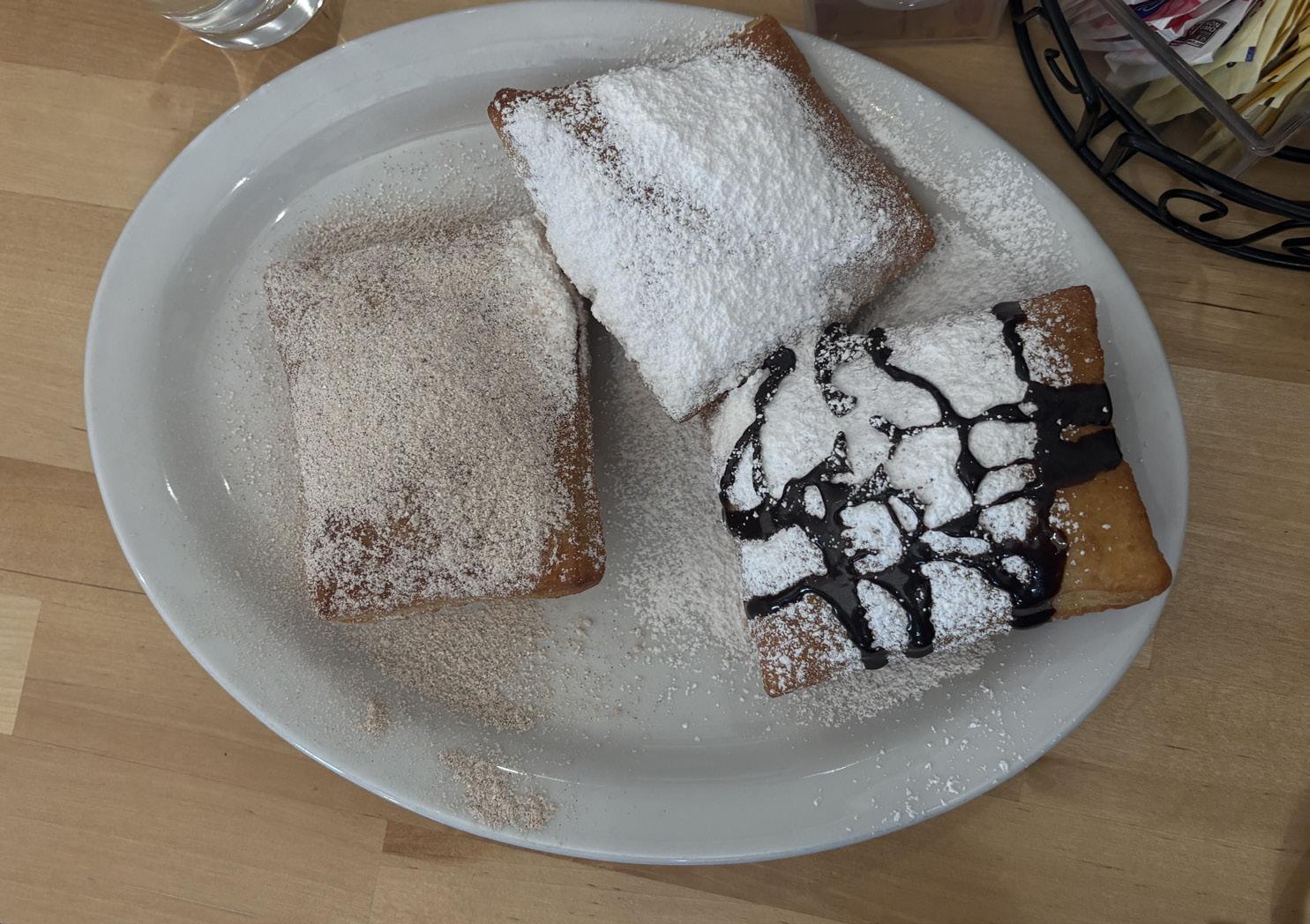 Naturally, I was called to their signature beignets, a fan favorite among the locals. They came in three flavors: dark chocolate with powdered sugar, cinnamon sugar and just powdered sugar. I ended up ordering one of each.