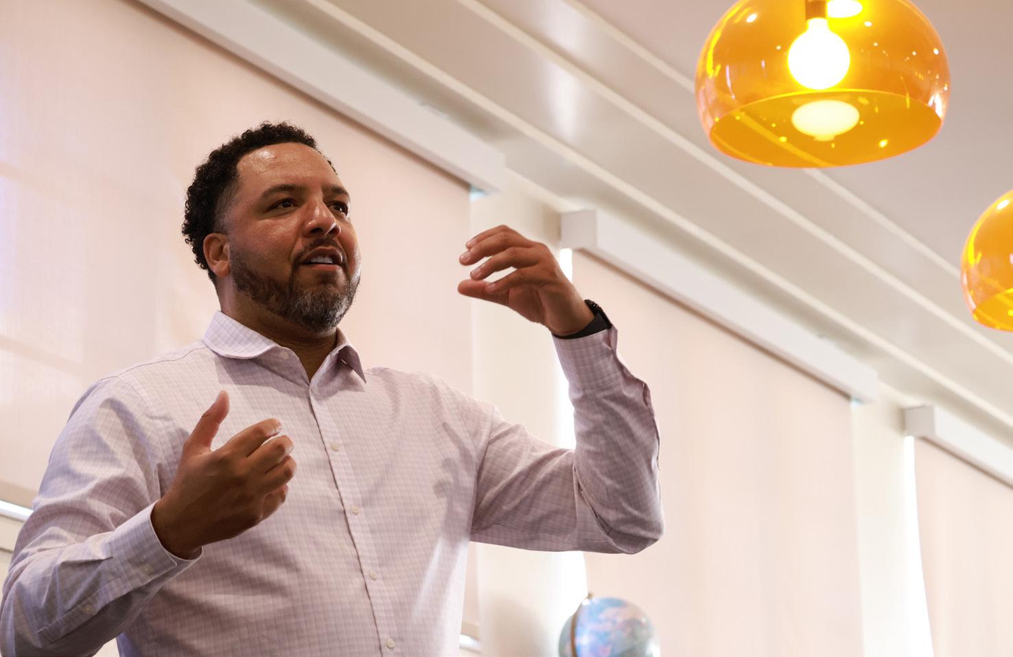 teachers, pros, and students. The day began with an introduction in Lindland Theatre by Riordan journalism adviser Susan Sutton, MJE, JEANC President Julia Satterthwaite, MJE of Monta Vista High School, 95.7 The Game’s host Joe Shasky ’01, and NBC Sports Bay Area’s Golden State Warriors Pre/ Postgame Live host Bonta Hill. They presented the schedule for the day and encouraged the excited students to learn before sending them off to the sessions.