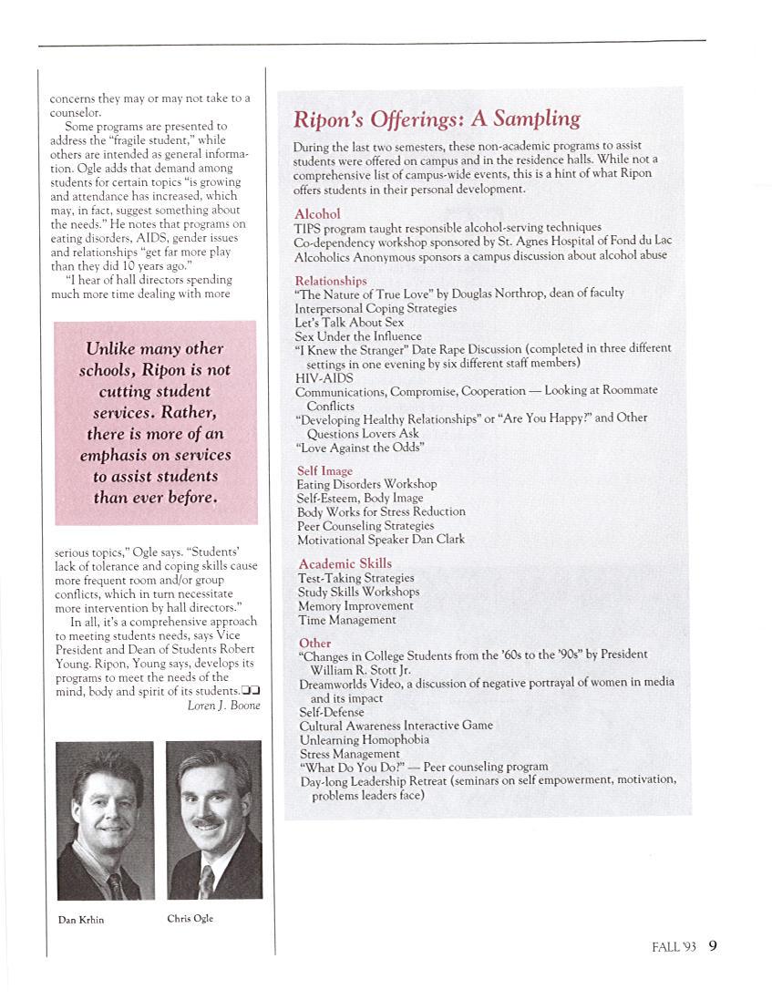 Ripon Magazine Fall 1993 by Ripon College - Issuu