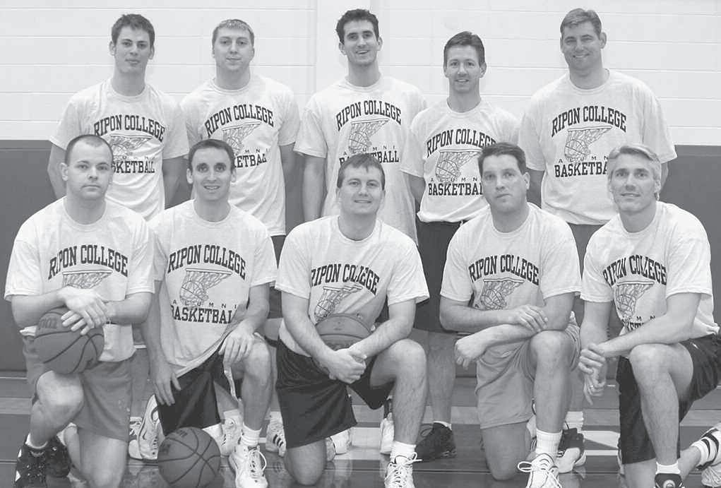 Kneeling, from left, are Matt Becker ’99, Eric Pilsl ’93 and Brad Augustyn ’88. Standing, from left, are Andy Van Wie ’99, Mike Basile ’94, Brett Vraney ’01, Jeff Massen ’01, Todd Fortune ’96, Adam Crawford ’03, Lud Wurtz ’78 and Steve Kohl ’02. Sal De Los Angeles ’05 photos