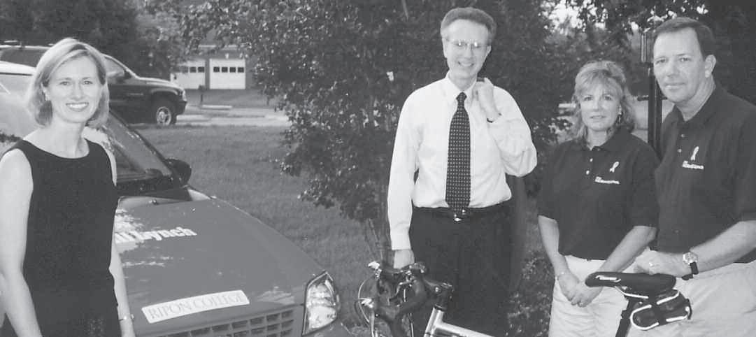 New Ripon President David C. Joyce and his wife, Lynne, participated in a 1,000-mile bike ride from North Carolina to Boston to raise funds for cancer research, cancer awareness and students touched by cancer. Along the way, the Joyces visited with several Ripon alumni.
