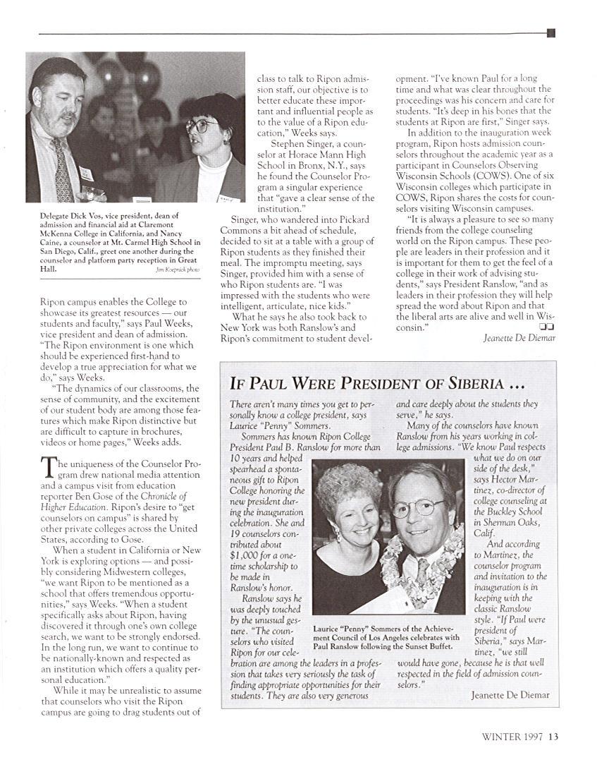 Ripon Magazine Winter 1997 by Ripon College - Issuu