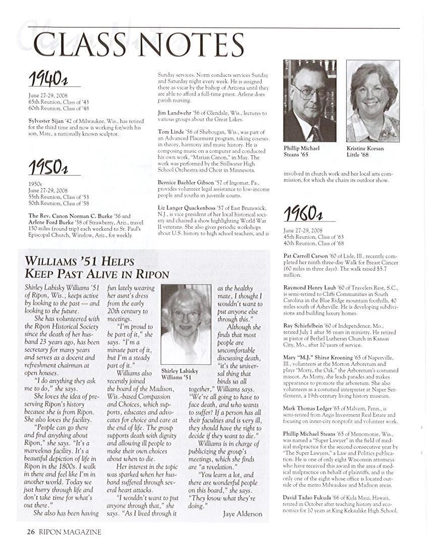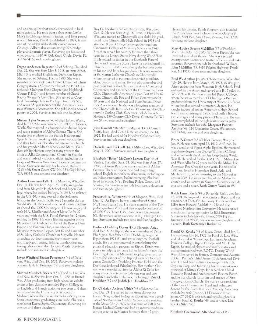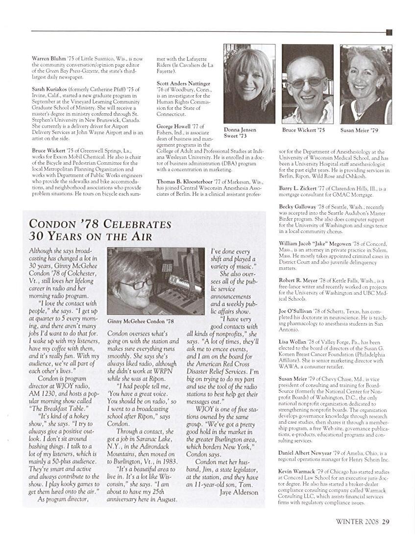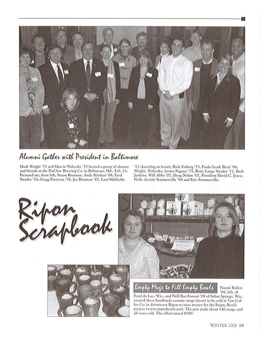 • In ,he Fall2007 issueof Riron Magazine. m,reported,hn,Jim H,in '08 uas thefirst Riponsuukm in m o de®leJ ro recei,-.:an undergraduatef,llou,1hip from theFun,lfor T heologicalEducation. Actually, Ben Ko,ucny '01 r,cei,,,d ,he sam, f,Ilo,,,shipthepre,•iousyear. Ko11;>01y 1sattendingVan,hbilt University Di,iniry SchoolinNruh,ille, Tenn., purn ,ing a master'sof di,inity degreeand ordinll!ionin theUnited Churchof Christ. In 1M r sarneissue u,1estated thtu GregoryMercier '1 I ofNewb1<ryPork, Calif., rearedaf,er 31 yeorsof beingon contTll<tfor theFBI ,\,!ercierreriredla.st May afcer 3 I yearsas a speci<IIagentand supen,sorfor theFBl's Los A ngelesfield office.His retirementla.std a lengthytwo u,eeksbefor, he retumedro ,he FBIas a conrrac r(1S$€Cjorfeiucreinle.srigator."It is myjob to go after ,he ilkgallygottenprojits nuidebJcriminalsoi.r agents are puttingattl(ly,u•heclierthecrin1ina4ari.i dn,g dea/eTs,fTaudstm, mobsters , gang bangers.tmorists or p,opfe « •ho prey on our children," St1)'S Nfer,ier.