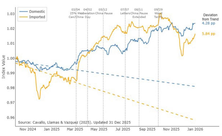 A study found that 96 percent of the tariff burden is being absorbed by U.S. businesses and consumers rather than foreign exporters. This means that U.S. taxes increased by around $200 billion in 2025.
