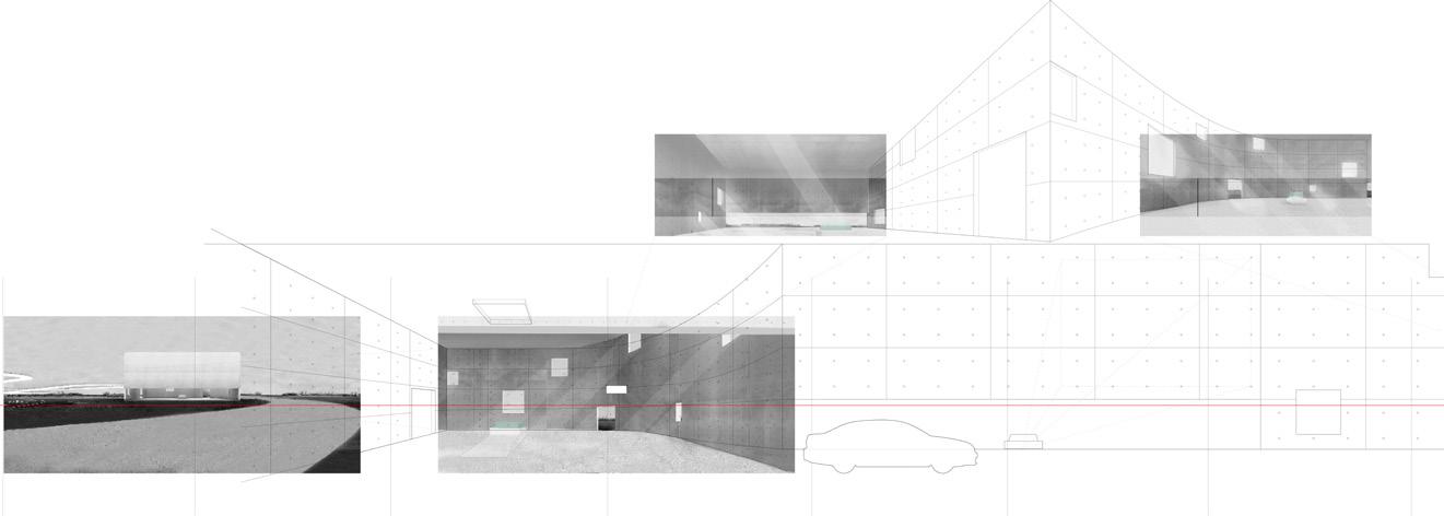 Through introducing a series of sensorial disruptions to an otherwise indifferent path of travel that wraps around the existing funeral home, the thesis explores the possibility of the automobile sublime in the hope of holding better space for a slower goodbye.