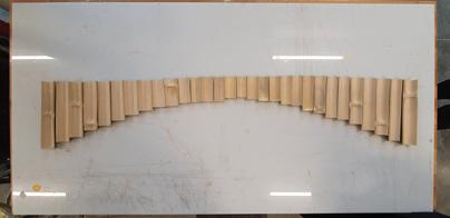 3. Bend the bamboo strip on the jig based on the holographic projection.