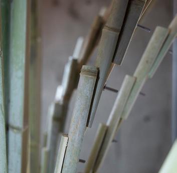 BASE BOARD 5m 10m 20m 25m 30m 15m HumanAverage Height: (1.82m) Bambusa striata24.5 ft (7.46m) Bambusa tuldaAverage Height: (6.09m) Bambusa polymorpha30 (9.14m) Bambusa balcooa(15.5m) Bambusa arundinace35 Bambusa nana25 ft Melocanna bacciferaAverage Height: (14.7m)Average Height: (28.9m) Bambusa striata •Native the Indo-china, grows 17-32 feet height and 4-8 toys, and construction. •Native the Indian subcontinent(Also famous Indian timber Bengal bamboo) and used the paper pulp Bambusa polymorpha taste, grows up 20-40 feet furniture, handicrafts, house construction, and landscaping sed for construction purposes. Bambusa nana •- Grows upto 20- 30 feet tall. •- Pevalent decorative plant Bamboo tiles Bamboo strip Dowel Node cross section Freshly cut bamboo Lash joints (x5) Threaded palm ber Swing BAMBOO SPLIT DOWELS 5m 10m 20m 25m 30m 35m 15m HumanAverage Height: Bambusa striata24.5 Bambusa tulda20 Bambusa polymorphaAverage Height: (9.14m) Bambusa balcooaBambusa arundinaceAverage Height: (10.6m) Bambusa nanaAverage Height: Melocanna bacciferaAverage Height: (14.7m) Dendrocalamus giganteusAverage Height: 95 (28.9m) Typological Comparison on South Asia Bamboos Bamboo Tactics: Team 4 Bambusa arundinace •Origin India, Bangladesh, tall, and young shoots are parts of India. •Variety occupies 15% all Bambusa striata •Native to the Indo-china, grows centimeters diameter. •- Used in the making furniture, toys, and construction. Bambusa tulda •Native the Indian subcontinent(Also famous as Indian timber or Bengal bamboo) •Grows height 15-25 feet and used in the paper pulp industry. Bambusa polymorpha •Has edible shoots with sweet height. •Used the makingof construction, and landscaping Bambusa balcooa •Known Female bamboo northeast •Grows 39-73 feet tall and 6-15 cm diameter. •-Used bridges and fishing and agriculture implements, woven mats, and the formation rikshaw hood frames. •-Also edible as vegetables and leaves 5m 10m 15m 20m 25m 30m 35m 40m 45m 50m 55m 60m 65m 70m 75 Melocanna baccifera •Grows 32-65 feettall. •Grows mostly as Dendrocalamus giganteus •Grows 90-100 feet tall. •Found Uttaranchal, West Bengal, Karnataka, and Tamil Nadu South India. •Used for handcrafts. Bambusa nana •- Grows upto 20- 30 feet tall. •- Pevalent decorative plant owing to appealing foliage. Bamboo tiles Bamboo strip Dowel Node cross section Freshly cut bamboo Lash joints (x5) Threaded palm ber Swing 7 7 Specificity Method Prototype Asian bamboo species Bamboo swing in Nepal, showoing rigid bottom, flexible top Rigid tiles Integrating VR for accuracy Shingling the tiles on a single flexible bamboo stripe