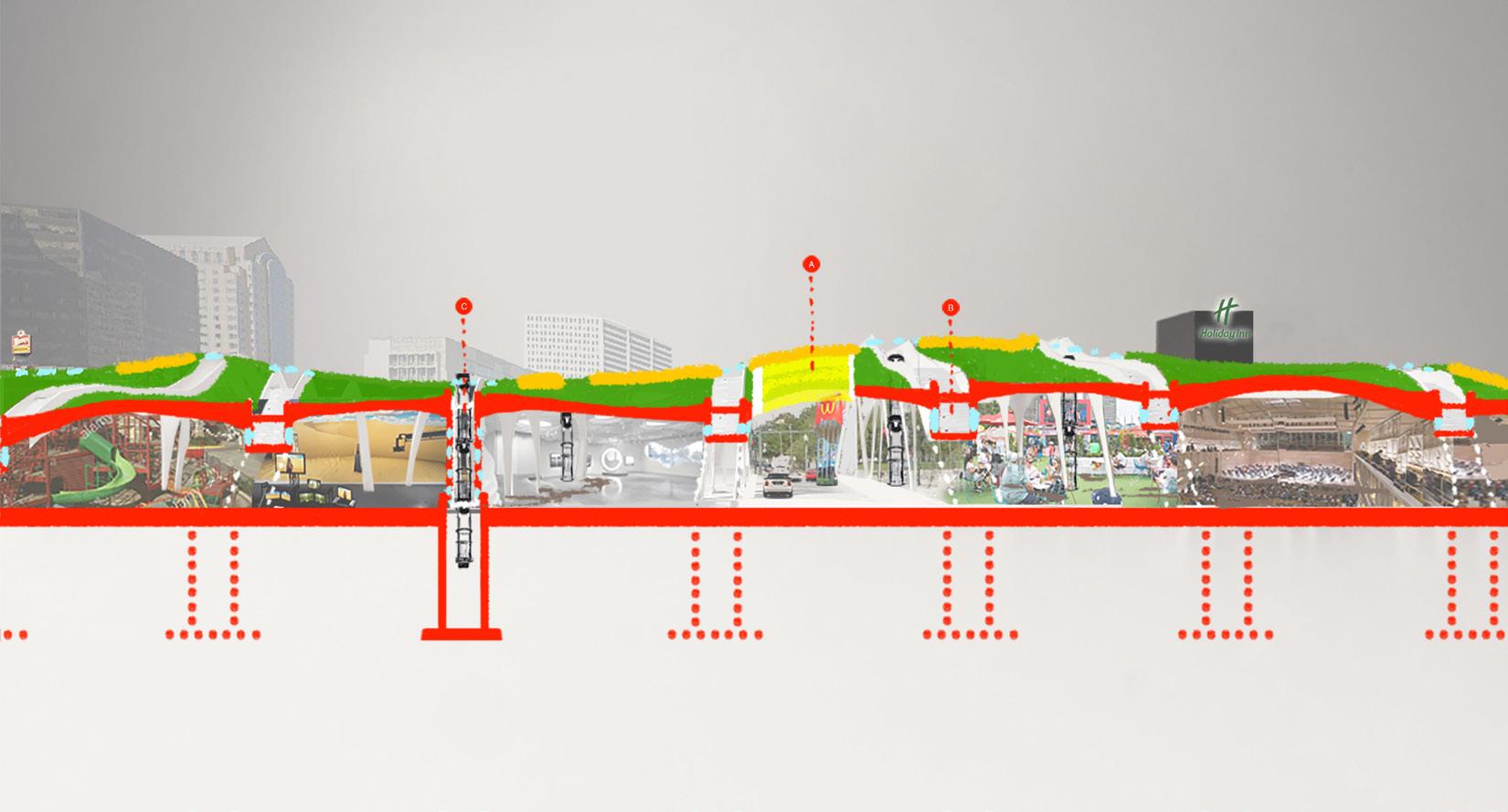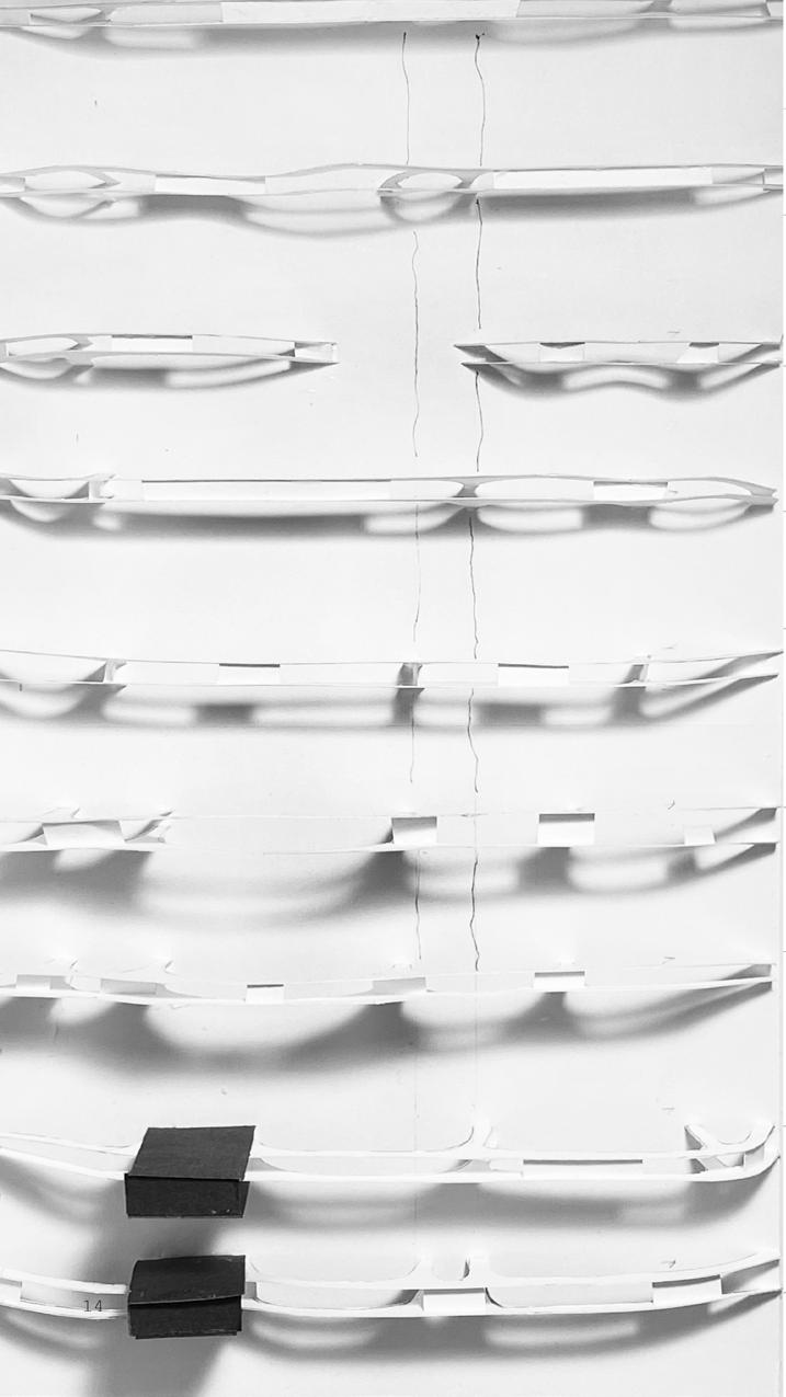 In this project, my partner Oyin and I propose an undulating rib structure topped by an unifying roof for our prompt to create a hybridity center in New Orleans. Taking Le Fresnoy as our precedent, we apply further interactive strategies such as blending, bubbling and popping to mix all the programmatic ingredients of the urban scene together, and help the architecture relate to the site by dripping onto the streets as well as the Duncan plaza nearby.
