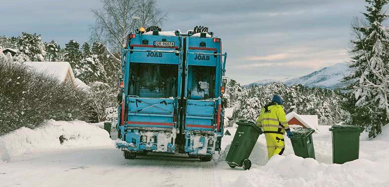 Med store snømengder har mannskapet ute på innhenting en krevende jobb. Veiene er glatte og fulle dunker må ofte trekkes gjennom dyp snø og over kanter for å få de tømt.