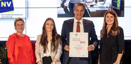 Die Niederösterreichische Versicherung erhielt zwei Auszeichnungen. Als fami lienfreundliches Unternehmen, das er folgreich am Audit berufundfamilie teil genommen hat, sowie als österreichischer Leitbetrieb, der Maßstäbe in Unterneh mertum setzt. Mag. Dr. Susanne Raab,