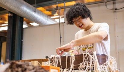 The material exploration that is at the heart of RISD classes has given Li a deep understanding of which woods are best for specific instruments. Cedar and spruce, for example, are most suitable for soundboards, he says, because of their weight-tostrength ratio. This means they are strong but flexible. Li is also a musician, and as someone who both makes and plays his instruments, he is able in a profound, direct way to connect how an instrument is made with how it will be played and the quality of sound it will produce.