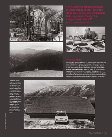 The Meta Metz Well-read and deeply engaged in the political, social and intellectual life of RISD, the late Professor Emeritus Gary Metz was known for embracing the new. In the 1970s, he “generated a significant body of work that was very much in the spirit of the times,” according to Stephan Apicella-Hitchcock MFA 96 PH, one of his former students organizing a show of his mentor’s work. The photographs from Metz’s Quaking Aspen series selected for the exhibition challenge the early tradition of landscape photography by moving beyond sublime depictions of nature towards the vernacular approach shown here.
