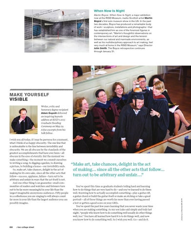 MAKE YOURSELF VISIBLE Writer, critic and honorary degree recipient Adam Gopnik delivered an inspiring keynote address at RISD’s 2015 Graduate Hooding Ceremony on May 29. A few excerpts from his talk follow.