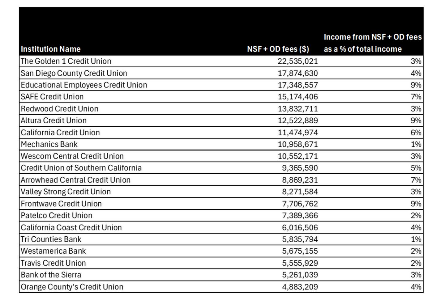 State-chartered credit unions charged over $250 million in overdraft and nonsufficient fund fees in 2023, making up 16 of the top 20 highest feecharging institutions.