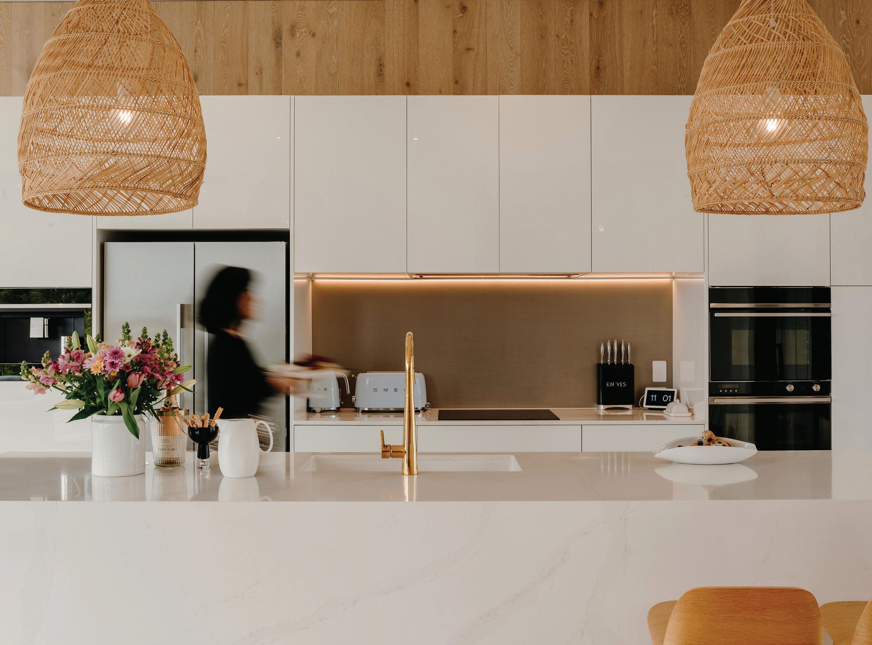 In this instance the benchtop, sofa, carpet and artworks can look quite small in symmetry to the size of the home. Each has been uniquely customised to deliver a true statement on its own.