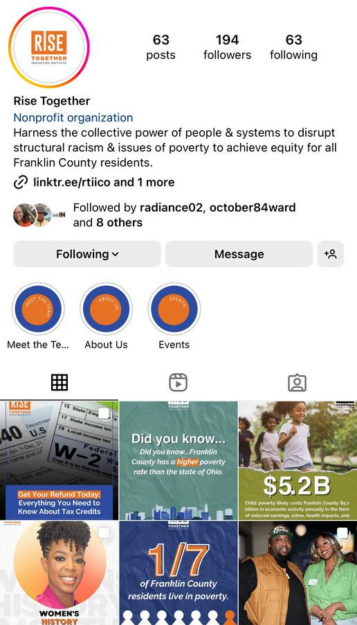 The Rise Together Innovation Institute is on a mission to empower Franklin County residents to rise above structural racism and poverty. Through innovative solutions and collaborative efforts, we harness the collective power of people and systems to achieve equity for all. Our goal is to restructure systems, empower self-sufficiency, and eliminate poverty to reimagine a stronger future for our growing region.