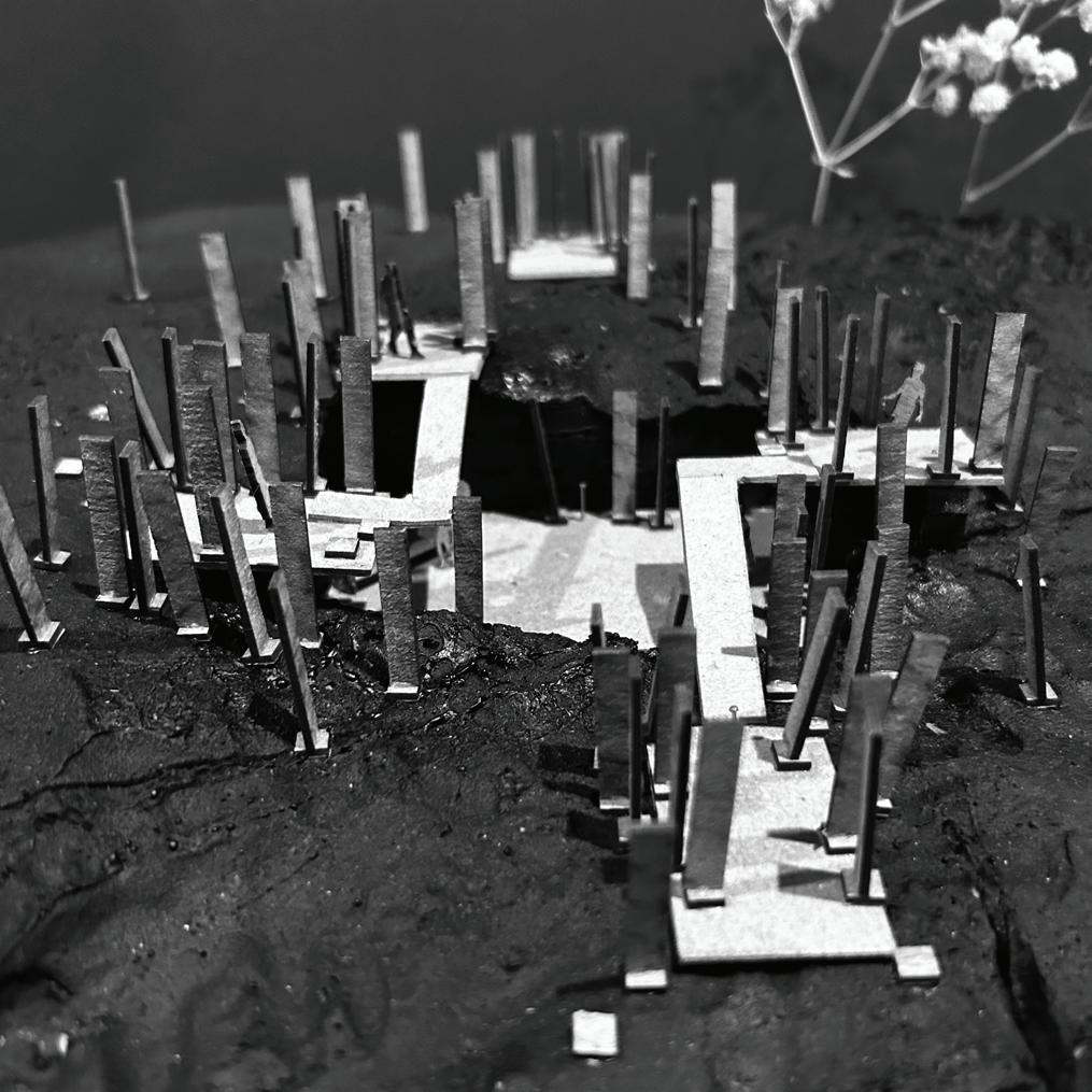TO BEGIN THIS MODULE STUDENTS USED A PREVIOUS MODULDE AS INSPIRATION TO CREATE A SPACE TO ESCAPE. THE PROGRAM REQUIRED 4-6 PRIVATE SPACES AND ONE GROUP SPACE. STUDENTS WERE TOLD TO PICK AN OPERATIVE WORD THAT DESCRIBED THE PREVIOUS MODULE AND TO OBEY THAT OPERATIVE IN THE CONSTRUCTION OF THIS SPACE. THE FINAL PRODUCT WAS A SPACE TO ESCAPE THAT OCCUPIED A SITE ON CAMPUS.