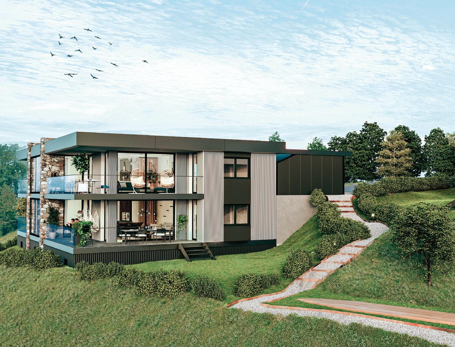 Um dem Wunsch des Bauherrn nach reichlich natürlichem Licht und Panoramablick gerecht zu werden, konzentrierte sich der Entwurf auf die Maximierung der Öffnungen und die Optimierung des Tageslichteinfalls in den Wohnungen. So entwickelte sich die architektonische Manifestation der Struktur zu einem dynamischen Zusammenspiel von Vor- und Rücksprüngen, die strategisch so gestaltet sind, dass sie sich in die umgebende Landschaft einfügen und gleichzeitig einen optimalen Einfall von natürlichem Licht gewährleisten.