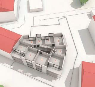 Das Gebäude am Rennweg 1-2 in Wallisellen in der Stadt Zürich liegt direkt an der belebten Kantonsstrasse, während der Hauptzugang von der Strasse hinter dem Gebäude erfolgt. Mit der Aufgabe, kompakte Wohneinheiten in einem kollektiven Wohnumfeld zu schaffen, haben wir uns architektonisch auf zwei Aspekte konzentriert: die Optimierung des Wohnraums auf begrenzter Fläche und die Verbesserung der natürlichen Belichtung des gesamten Gebäudes. Um diesen Anforderungen gerecht zu werden, wurde eine durchdachte Designstrategie entwickelt, die den Schwerpunkt auf die Kultivierung von Gemeinschaftsräumen legt, um die Lebensqualität insgesamt zu erhöhen. Im Mittelpunkt dieser Vision stand die Integration weitläufiger Gemeinschaftsbereiche, darunter ein grüner Dachgarten und ein geräumiger Innenhof. Diese Gemeinschaftsbereiche dienen nicht nur als gemeinsame Annehmlichkeiten, sondern auch als Katalysator für die Förderung des Gemeinschaftsgefühls und der Verbundenheit der Bewohner.