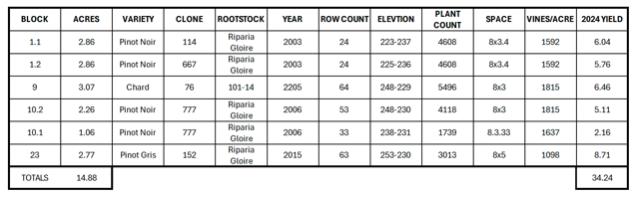 • Over 14.6 acres under vine, predominantly planted to Pinot Noir.