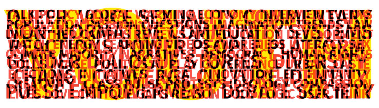 This 100 sq.ft installation has 87 words hidden in 987 layered pieces of painted wood, “Subtext” explores the viewer’s ability to recognize familiar words in unfamiliar conf igurations. It generates a conscious process of recognition of symbols as an integral part of understanding language that a reader otherwise does involuntarily. Every piece of wood contributes in parallel to the making of two separate words of completely different meanings. Each word read then further triggers thought about what its individual meaning and relevance could be. “Subtext” breaks down script to be seen as visual symbols that have many ways of being read, quite like how the words they form can be understood to have countless meanings. The words in “Subtext” are derived from Youth Ki Awaaz‘s written content and are representative of the organization’s ideals, themes and core values.