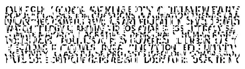 3 scales of text were digitally overlapped in 3 layers and a pattern of the overlaps were generated. Through the use of bold contrasting colors, a certain legibility emerges depending one’s vewing distance from the piece.