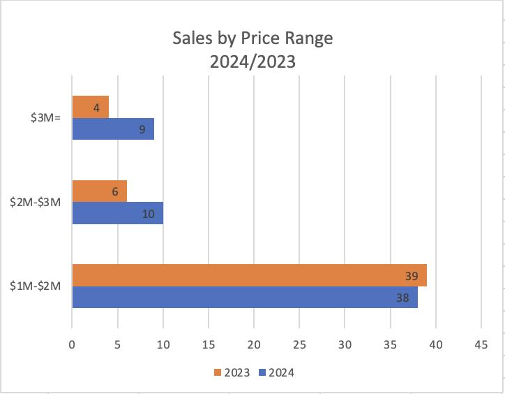 The volume of closed transactions increased 22% in Dorado, 56%in Condado and decreased 17%in Palmas del Mar and50%inBahiaBeach.ThesenumbersinBahia Beach do not reflect adrop in demand but rather that Bldg.3of OceanDrivenewdevelopment wasdeliveredin 2023 accounting for aprox. $50M in sales volume. Excluding Ocean Drive new development closings for 2023, thevolumeof salesfor BahiaBeach in 2024 is up 121%over 2023.Averagepricesper sq.ft.increased55%in Dorado, 13% in Condado, 27% in Bahia Beach and decreased8%inPalmasdel Mar.