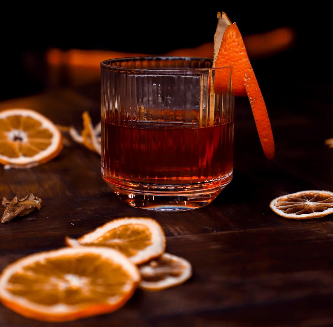 – 100mL Fino or Amontillado Sherry – 10mL sugar syrup – 2-3 fresh orange slices