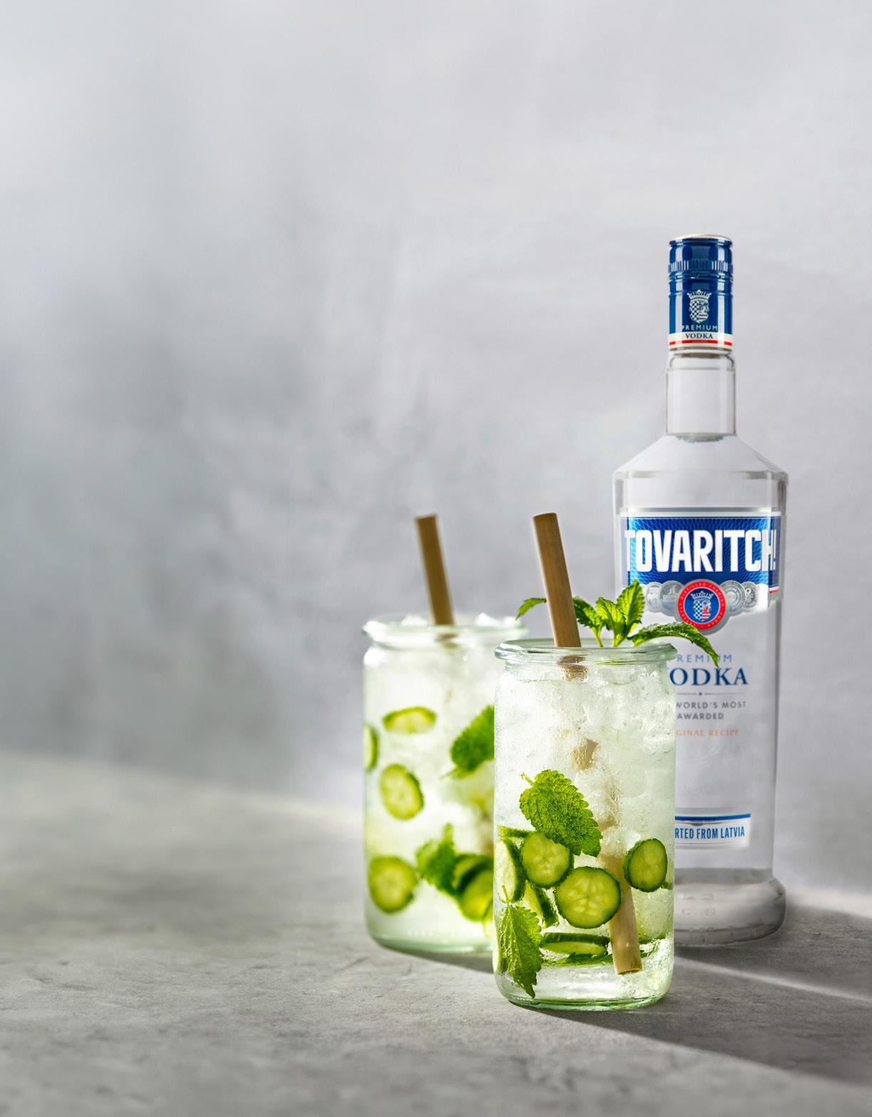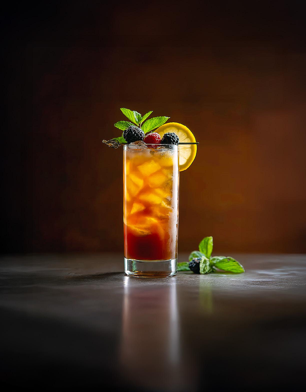 – Garnish: lemon wheel, mint and skewered fresh berries