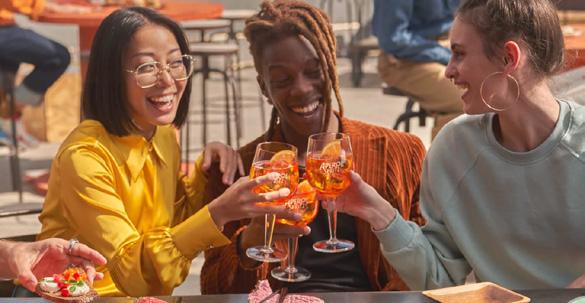 Recognised around the world for accompanying life’s magic moments. A backdrop to those shared connections between friends; spontaneous and light-hearted, meaningful and precious. Aperol raises a glass to 100 years of joyful moments. Here’s to sharing many more together!