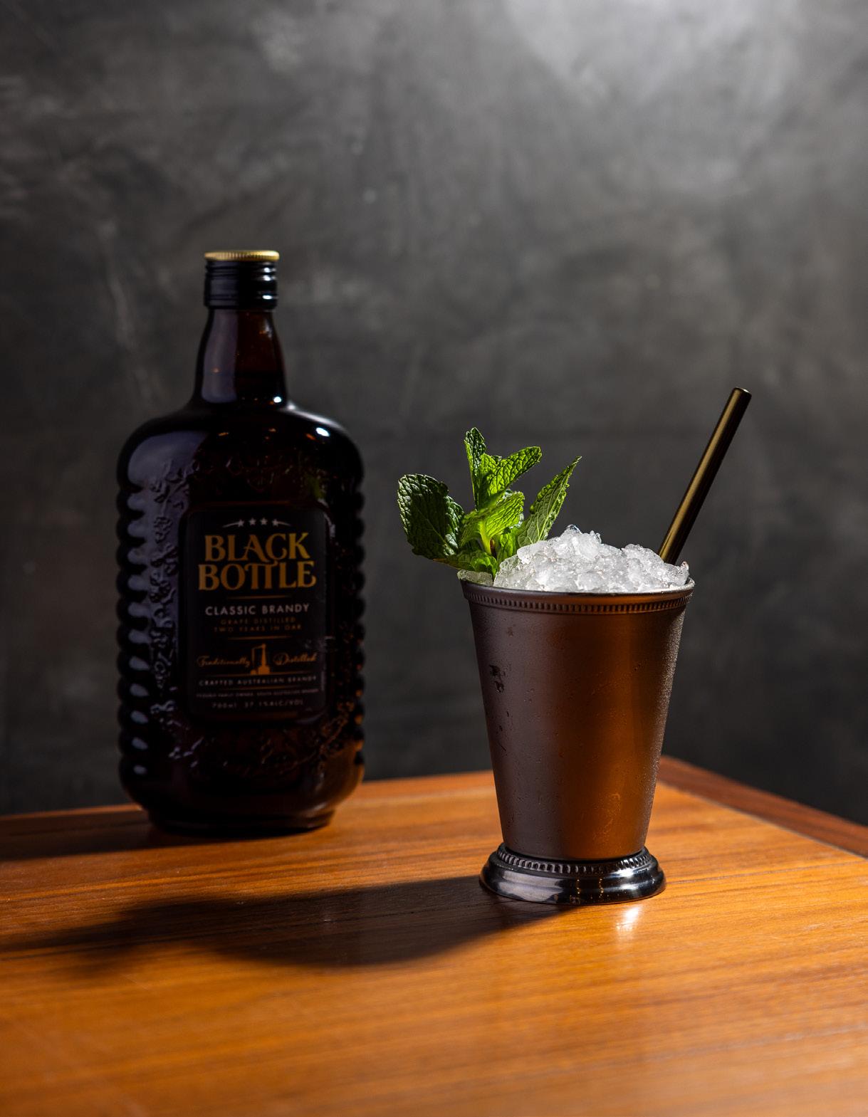 – 60mL Black Bottle Classic Brandy – 5mL sugar syrup – 8 mint leaves