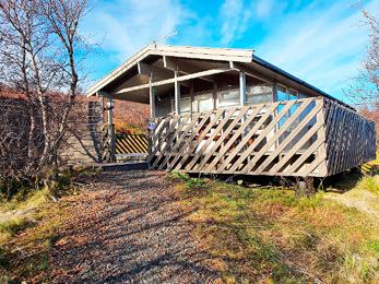 Húsið er á einni hæð og eru í því þrjú herbergi og allur nauðsynlegur húsbúnaður. Rúmstæði eru fyrir átta (tvö tvöföld rúm: 180x200 og 140x200 + tvær efri kojur) og eru í húsinu átta sængur og koddar. Hafa þarf meðferðis sængurfatnað (lín), handklæði, diskaþurrkur, borðklúta, salernispappír og þess háttar. Vönduð 76 fm verönd á tveimur pöllum er við húsið og heitur pottur.