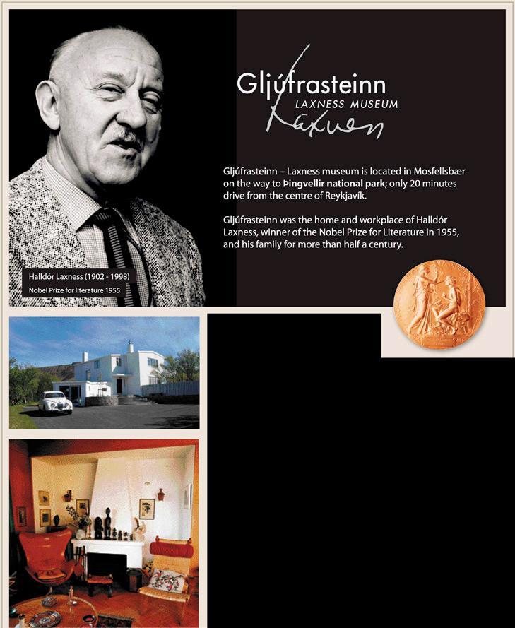 national park. Gljúfrasteinn was the home and workplace of Halldór Laxness, winner of the Nobel Prize for Literature in 1955 and his