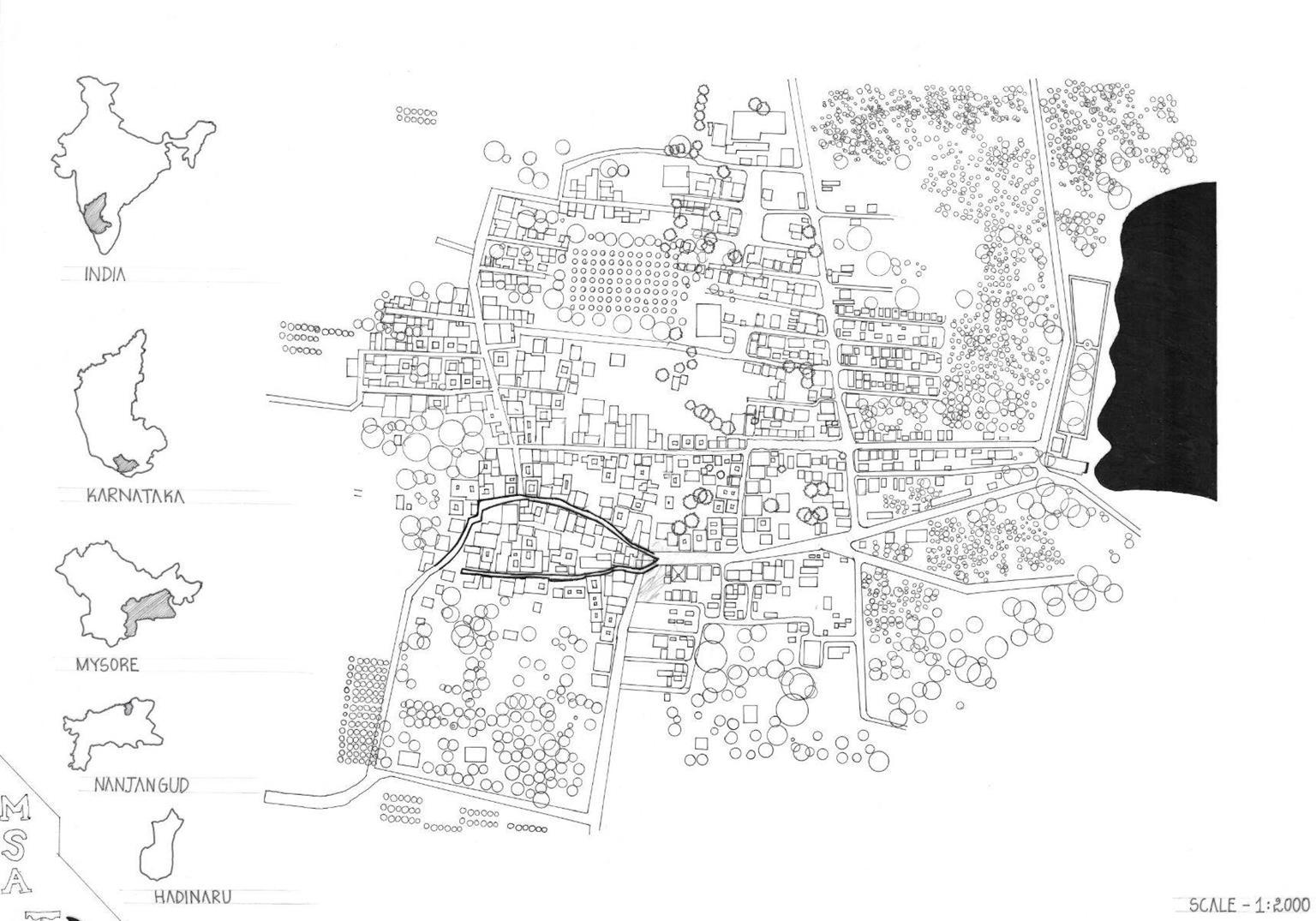 Study and documentation of urban village , Hinkal , Mysore , Karnataka , India.