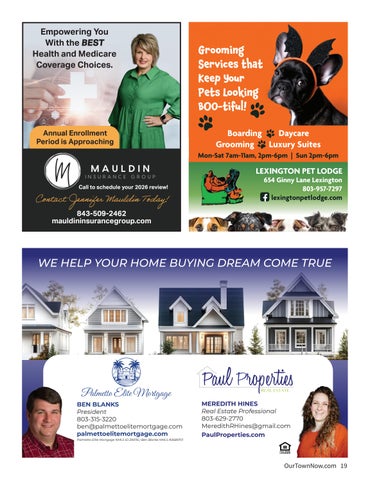 Ilove the seasonal changes we experience in South Carolina. Each season has its own unique charm and characteristics. Lucky for us, we can appreciate them all right here in Lexington County, or we may want to travel a short distance to enjoy different scenery. You can read about a few places you may want to visit this fall, such as the Blue Ridge Mountains, in this issue. Either way, fall has arrived, and I am here for it!