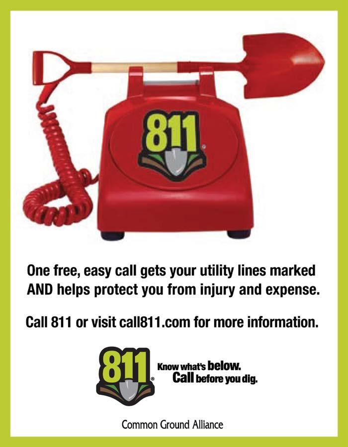 PLEASE, for your safety and for the safety of the general public, and the protection of our vital underground infrastructure. Submit your request online at www.onecallofwyoming.com or dial 811 from within Wyoming, or if calling from out of state please dial 1-800-849-2476 at least 2 full business days prior to beginning, ANY excavation activity.