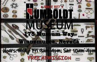 Humboldt Museum is situated above the California Trail, along the Humboldt River, at 175 Museum Way in Winnemucca, Nevada Public hours are Monday–Friday 9:00am-4:00pm & Saturdays 1:00pm-4:00pm The museum is generally self-guided, although docent-guided tours are available While admission is free, donations are always appreciated For more information visit www.humboldtmuseum.org or call 775-623-2912