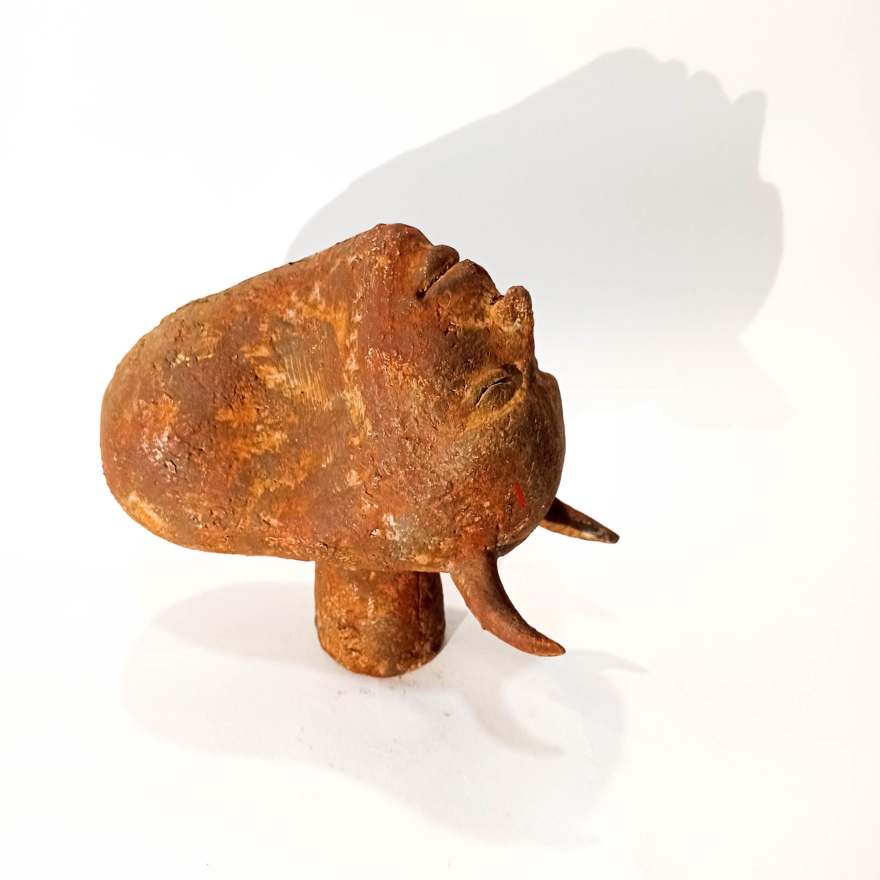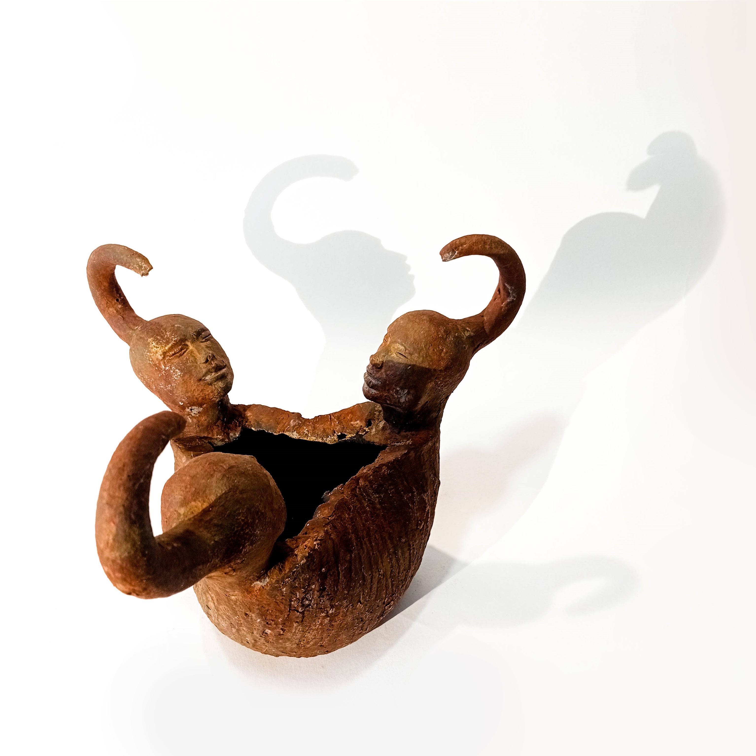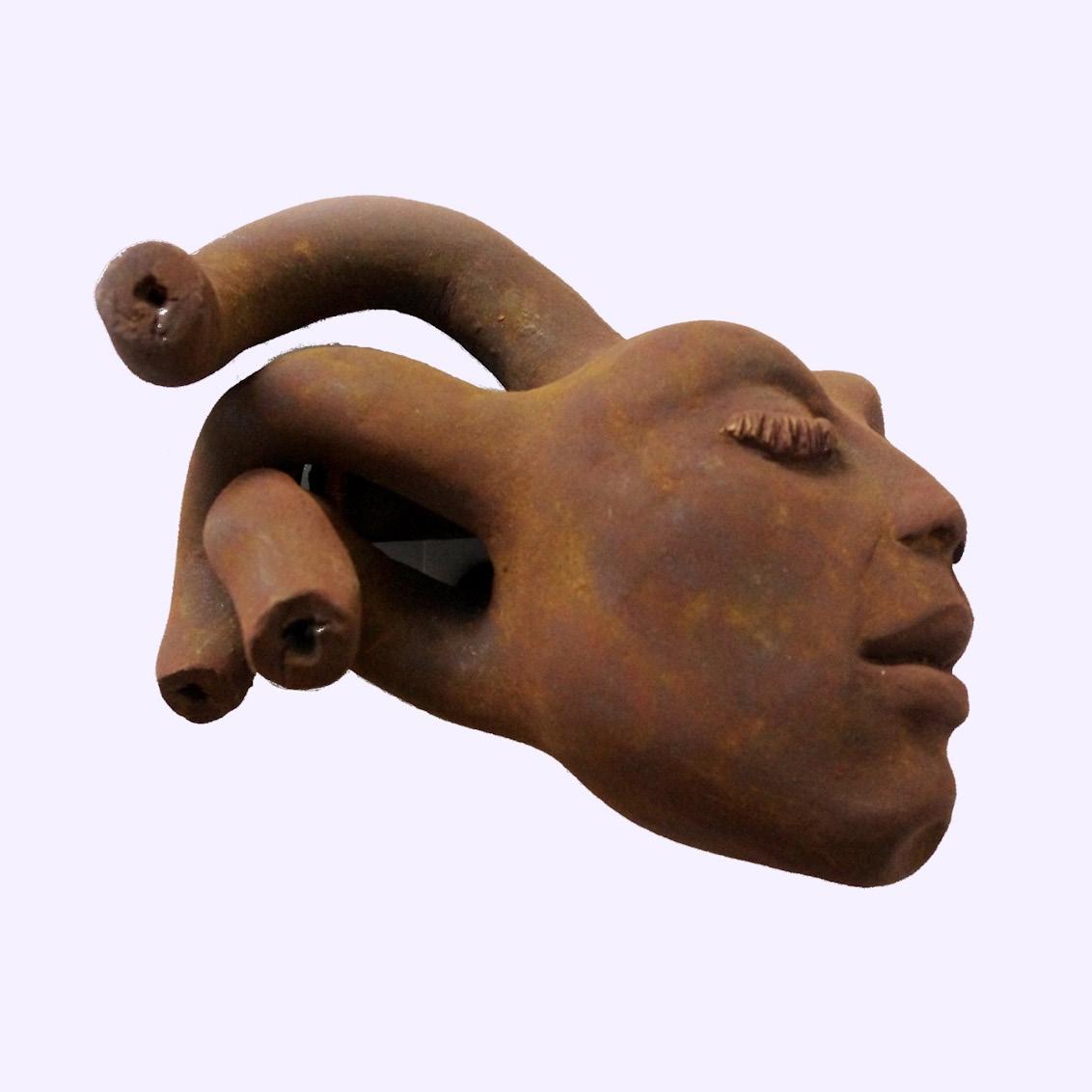 This collection of craft pieces focuses on the human head as an element of personal identity, replacing other parts of the body with symbolic representations. Furthermore, he uses the boat as an allusion to human migrations and the encounter of these people with other realities. The works, made of ceramic, are mostly small format, finished with a rusty iron patina, in their original earth materials or in matte black and white. They are presented as a search for the relationship with the basic, the essential, with images of pure forms.