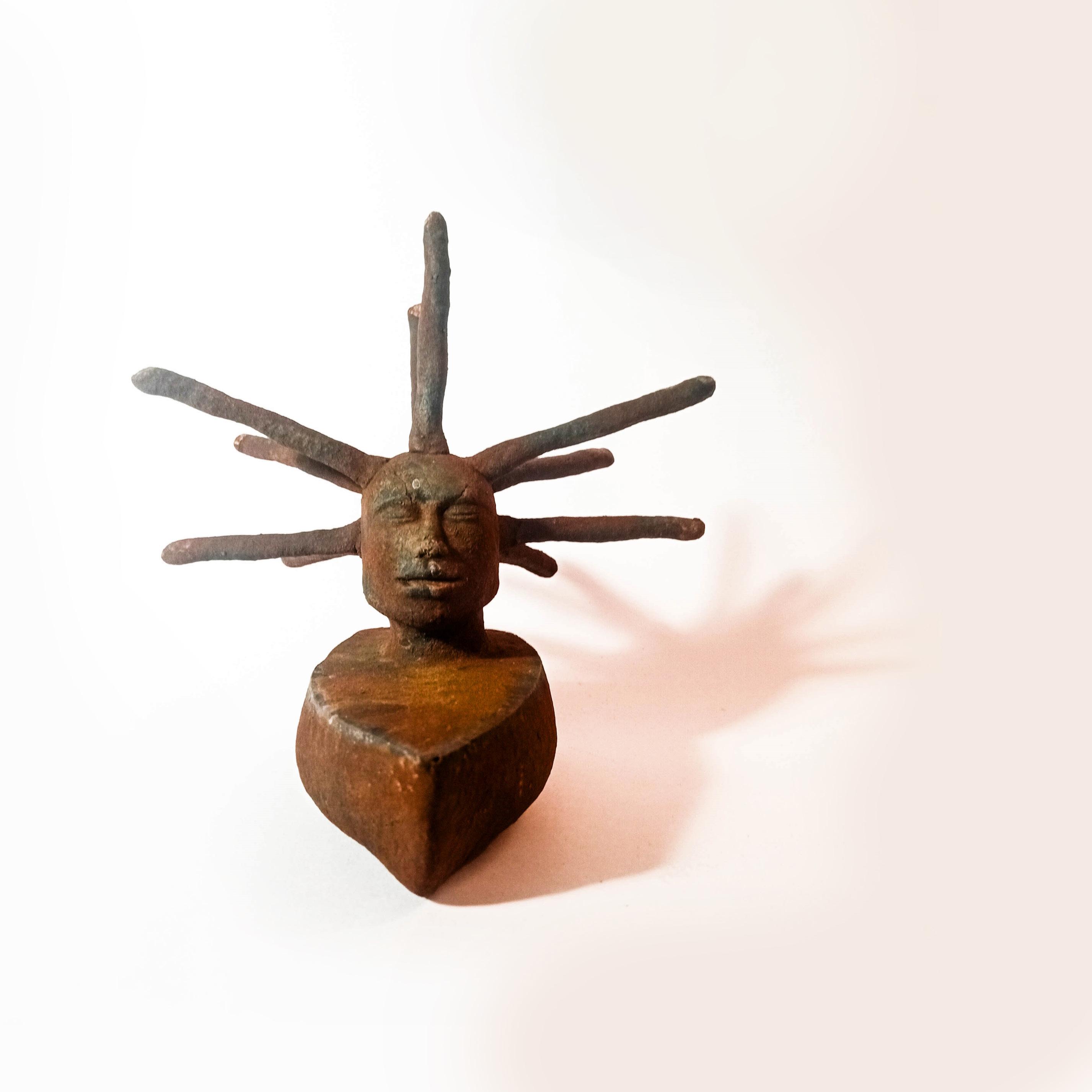 J´entreprends le travail de sculpture comme la réalisation d´une éfigie, qui est l´image ou la représentation d´une personne,ou d´un sentiment. Dans cellle-ci on ne voit pas la personne, comme dans un portrait, sinon plutôt une représentation symbolique, une caractérisation du pouvoir, des capacités de l´individu, ou même de ses qualités négatives. Les images de monnaies, de saints, ou de poupées que l´on brulait, ou pendait pendant l´inquisition ou dans le voudou même, sont des éfigies qui incarnent les qualités d´un personnage déterminé.