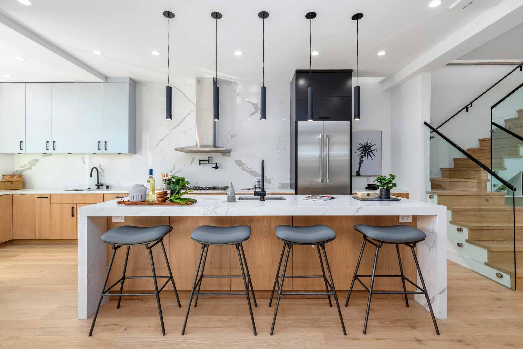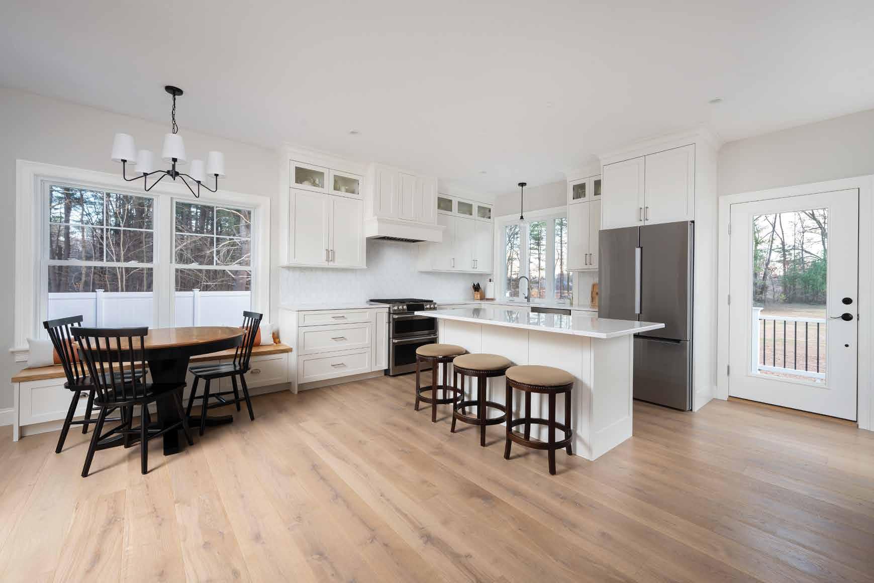 The kitchen is the heart of the home, and this one makes a statement. Featuring custom-colored hardwood floors from the LA RIVA collection, this luxurious open kitchen seamlessly ties together the entire home.