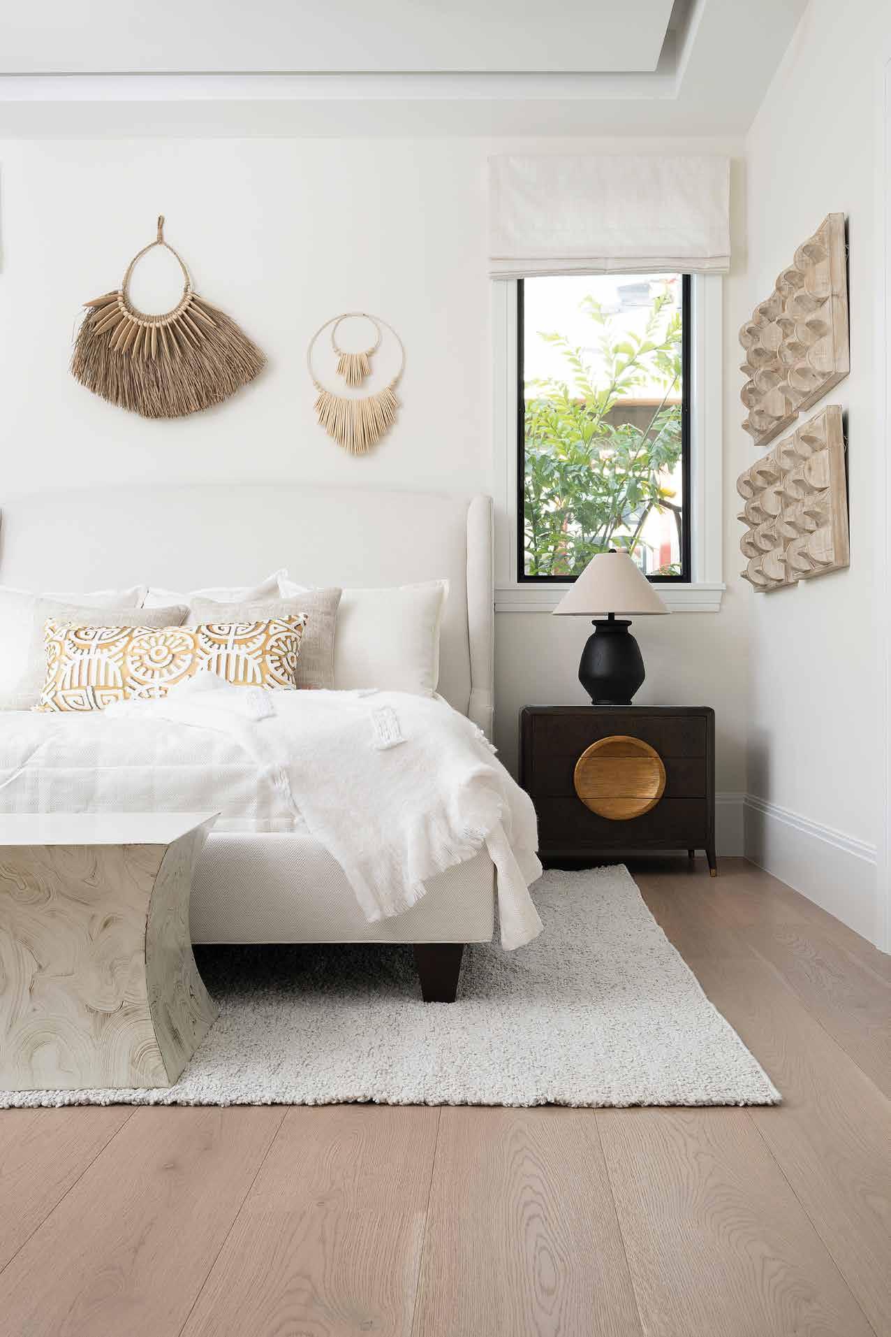 The Bayview home captures the essence of coastal serenity with its harmonious palette of whites, soft blues, and earthy-tone hardwood floors. Each hue is carefully selected to reflect the natural beauty of the shore, where sand meets sea, creating a