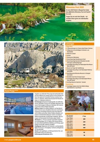 Leistungen 6-Tages-Reise ■■ 5 Übernachtungen im 4-Sterne-Hotel Pinija in Petrčane ■■ Halbpension mit reichhaltigem Frühstücks- und