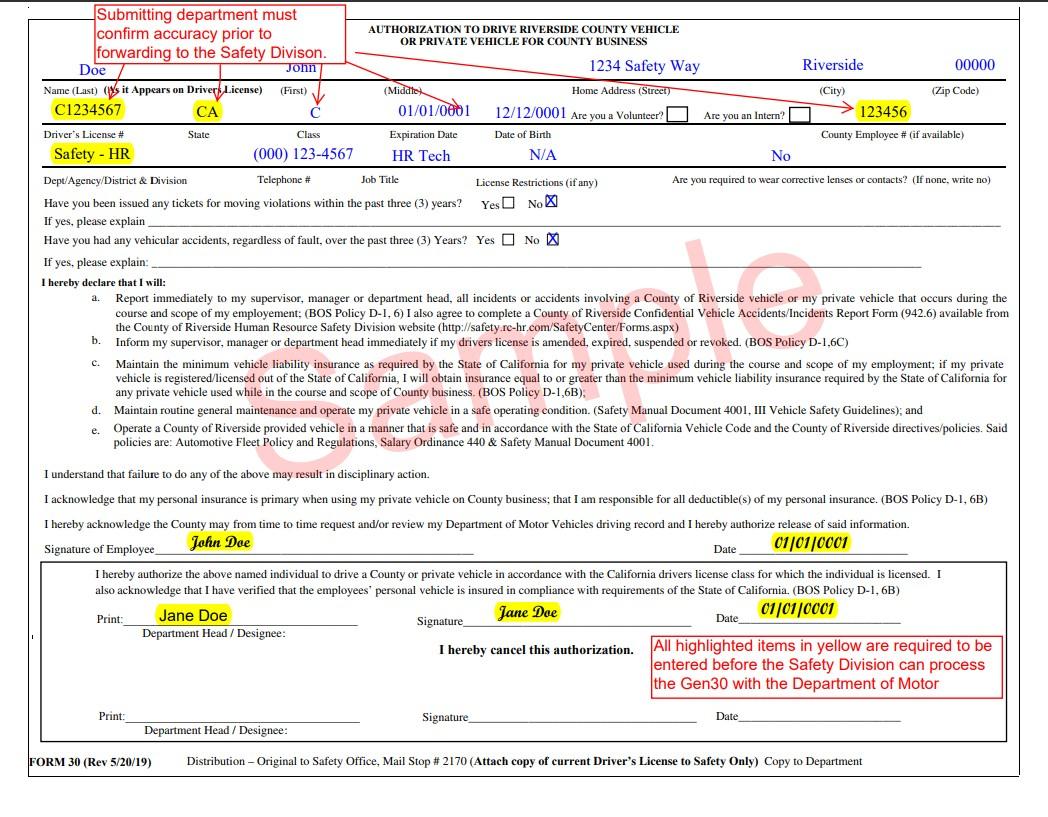 The County of Riverside is committed to maintaining safe and responsible use of its fleet vehicles. To ensure that only qualified and authorized employees operate County-owned vehicles, all drivers are required to complete the GEN30 – Authoriza-